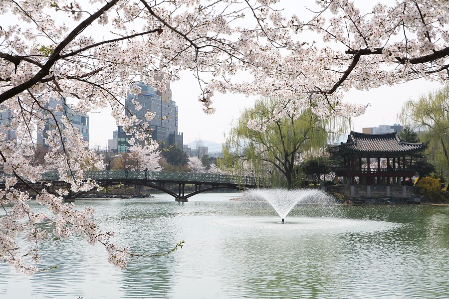 경기도 이천의 안흥지에서는 조선시대의 정취와 함께 벚꽃을 즐기실 수 있습니다. 빌딩과 함께 어우러진 정자의 모습은 묘한 조화를 이룹니다. 아름다운 안흥지에서 강 위로 비치는 벚꽃을 보는 것은 색다른 느낌을 자아냅니다. 고즈넉하고 따뜻하고 포근한 감정을 느낄 수 있는 차별화된 장소라고 말할 수 있겠네요. 현대적인 모습과 옛 우리의 모습 그리고 물과 함께 벚꽃을 감상해 보세요. 절묘한 아름다움을 만끽하실 수 있을 겁니다.